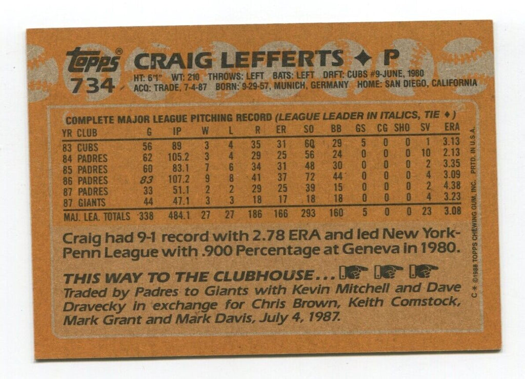 1988 Topps Craig Lefferts Signed Card Baseball MLB Autographed AUTO #734