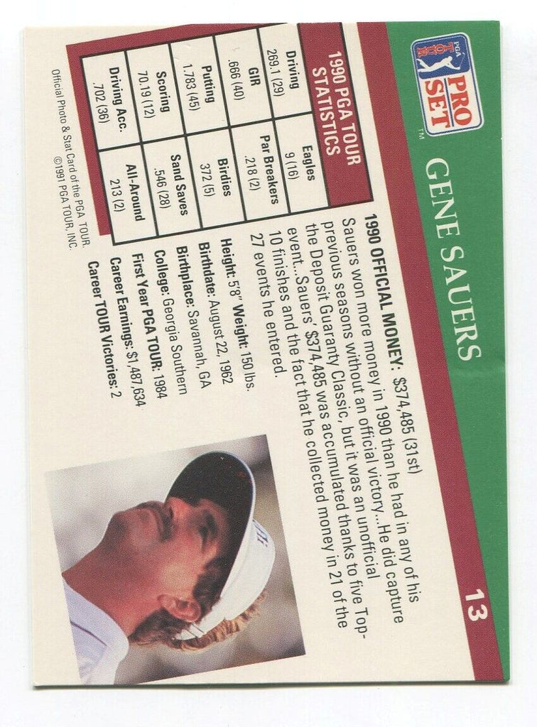 1991 Pro Set PGA Golf Gene Sauers Signed Card Autographed Signature #13