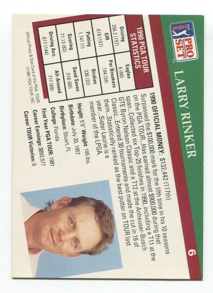 1991 Pro Set PGA Golf Larry Rinker Signed Card Autographed Signature #6