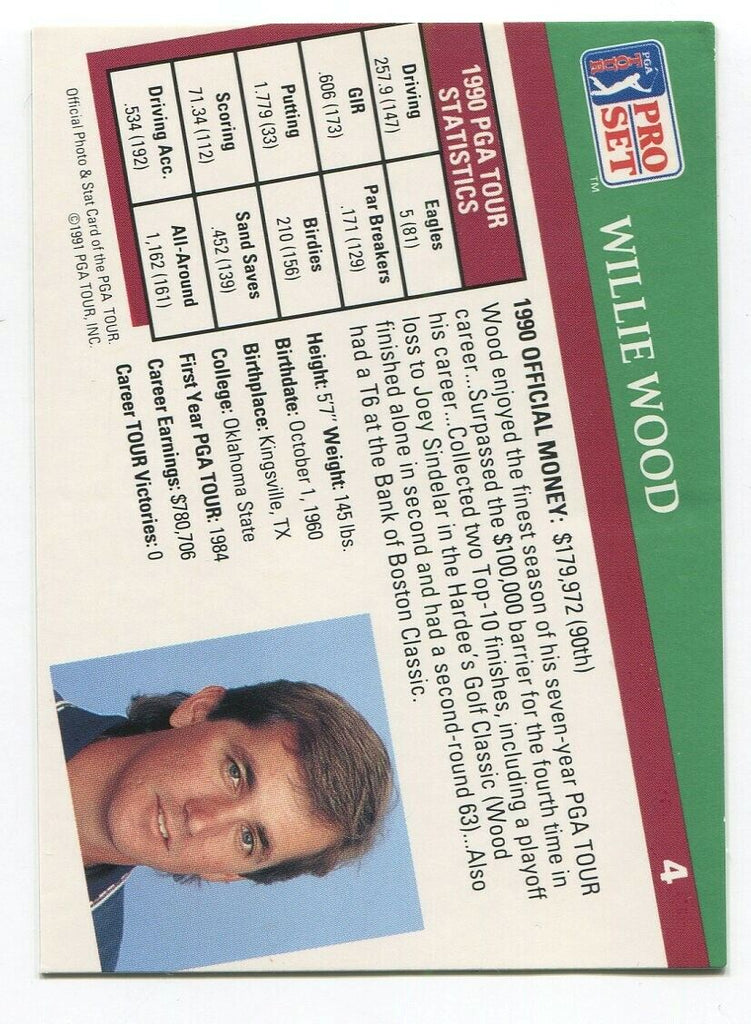1991 Pro Set PGA Golf Willie Wood Signed Card Autographed Signature #4