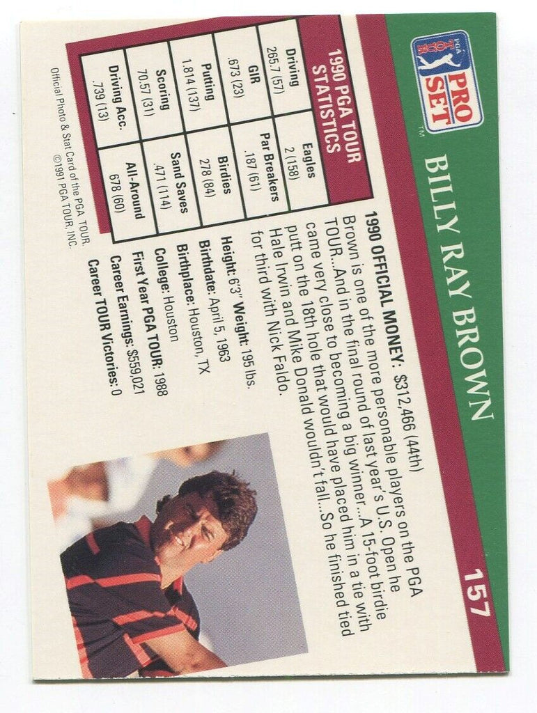 1991 Pro Set PGA Tour Golf Billy Ray Brown Signed Card Autographed #157