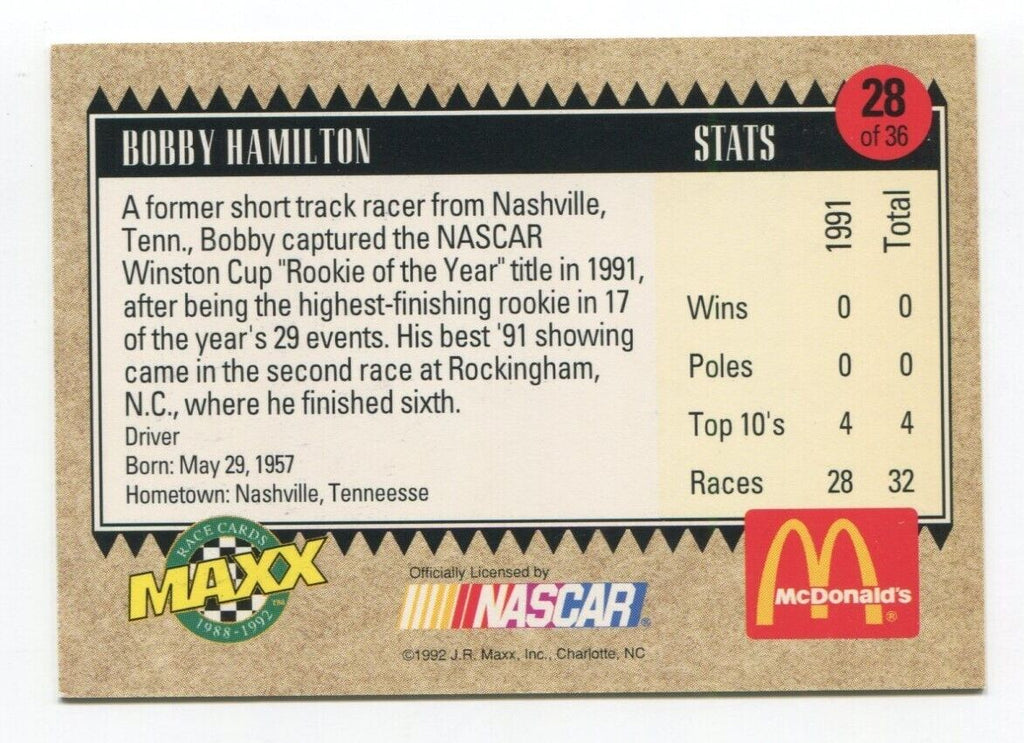 1992 Maxx McDonalds Bobby Hamilton Signed Card Racing Autograph NASCAR AUTO #28