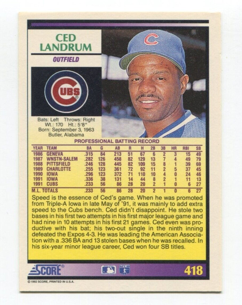 1992 Score Ced Landrum Signed Card Baseball Autographed #418