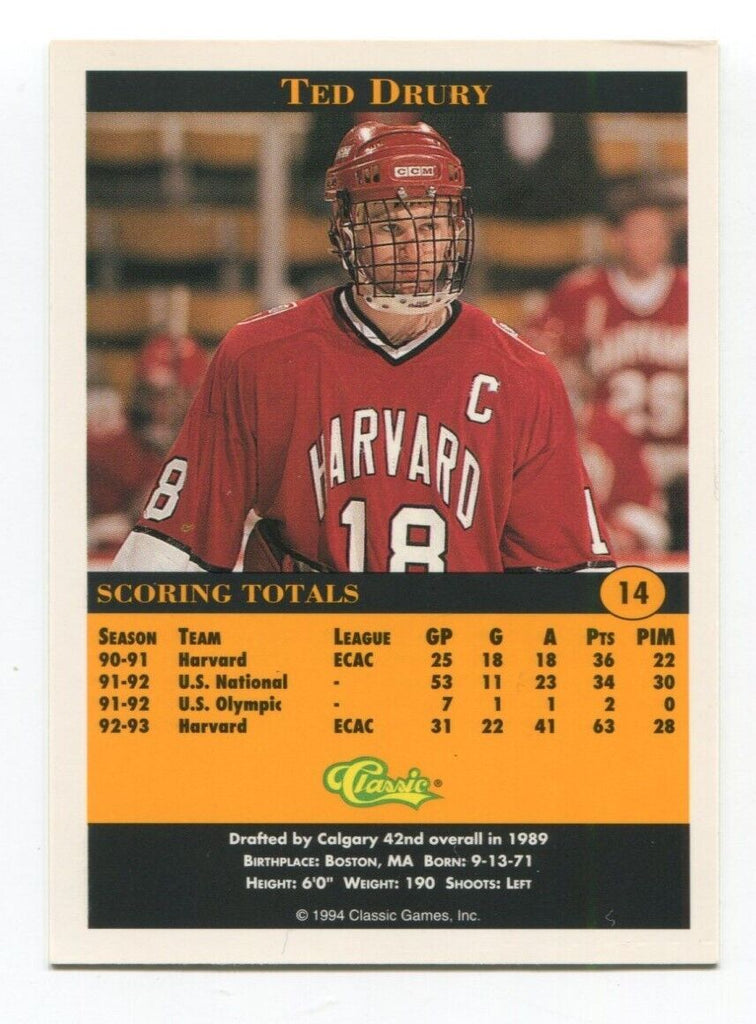 1994 Classic Ted Drury Signed Card Hockey NHL Autograph AUTO #14