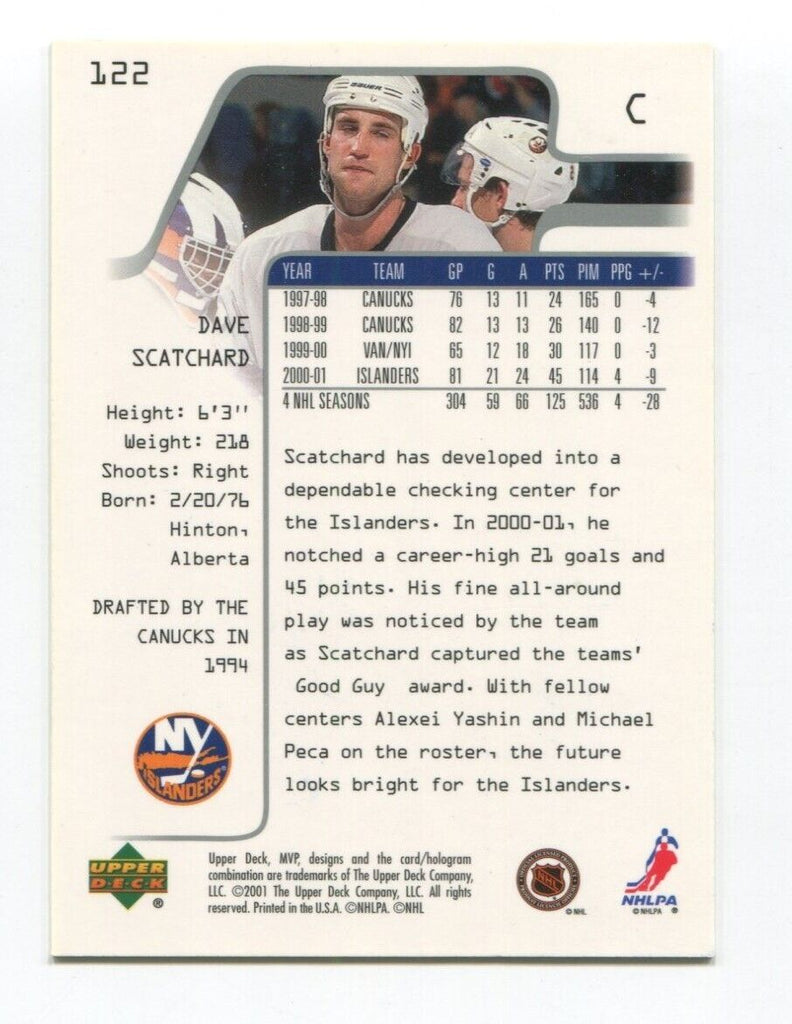 2001 Upped Deck MVP Dave Scatchard Signed Card Hockey NHL AUTO #122 NY Islanders