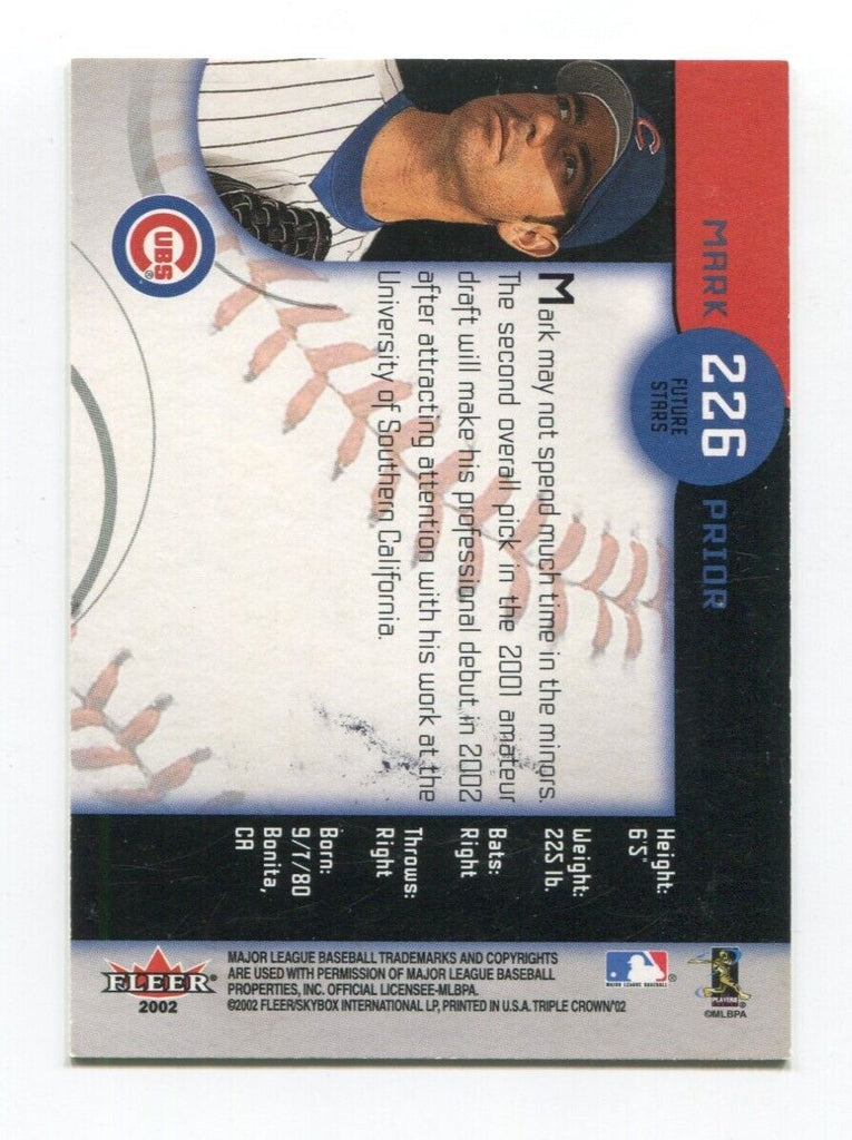 2002 Fleer Triple Crown Mark Prior Signed Card Baseball Autographed AUTO #226