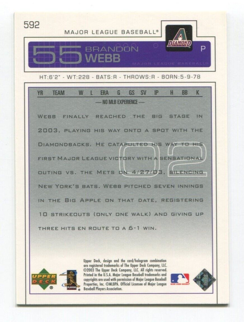 2003 Upper Deck Brandon Webb Signed Card Baseball MLB Autograph AUTO #592