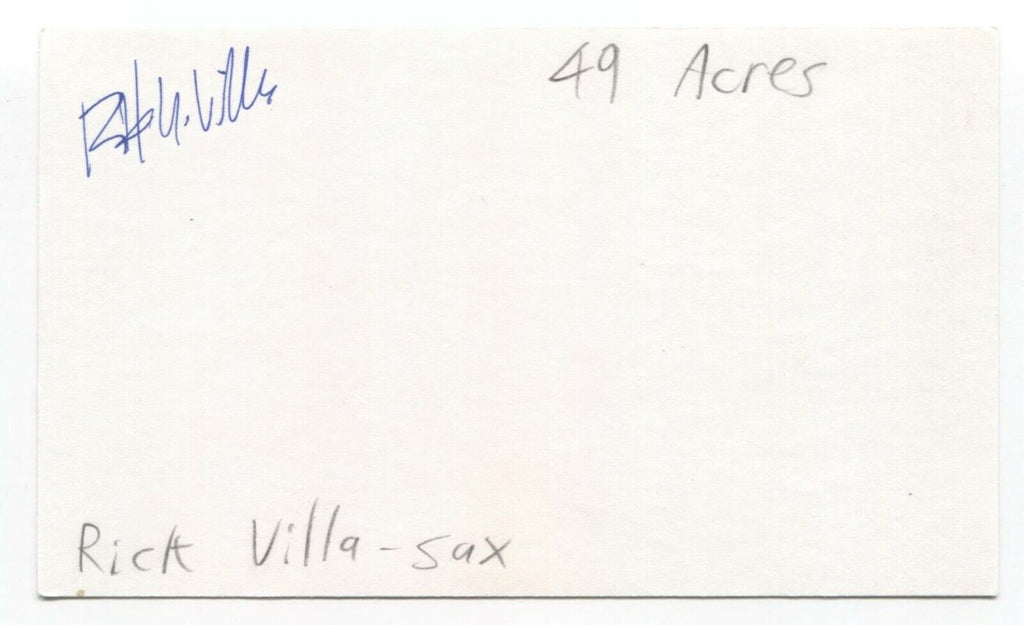 Up for sale is an autographed 3x5 index card, boldly signed by Rick Villa, of the band 49 Acres. Autograph was part of an enormous collection of over 9000 in person collected signatures.