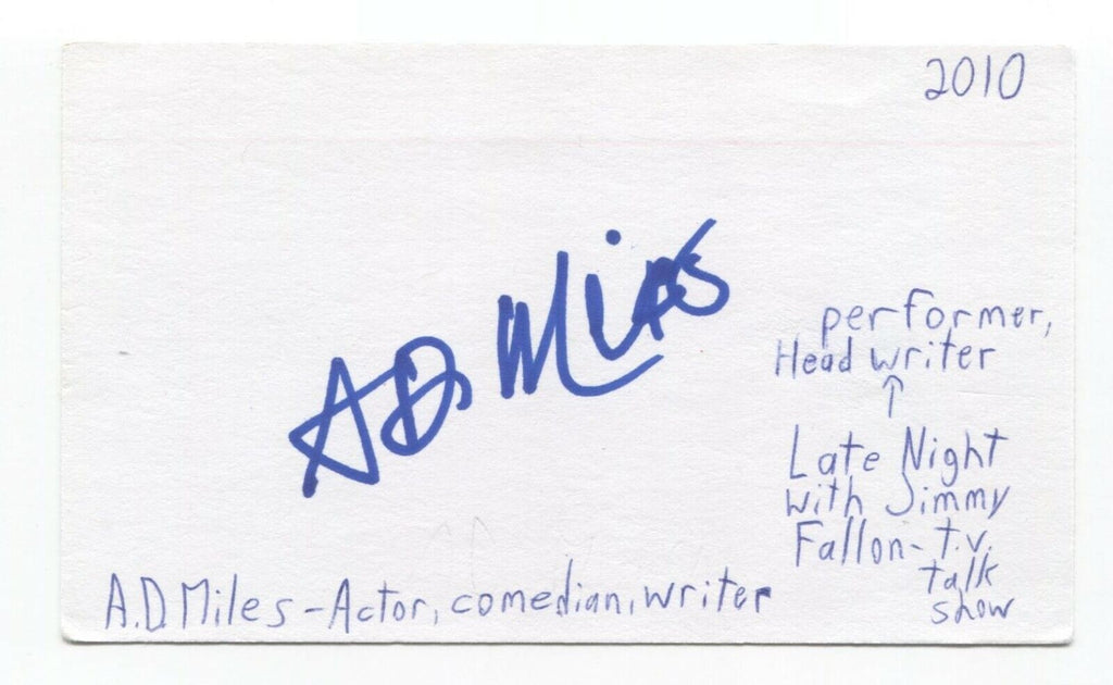 A.D. Miles Signed 3x5 Index Card Autographed Signature Comedian Writer Actor