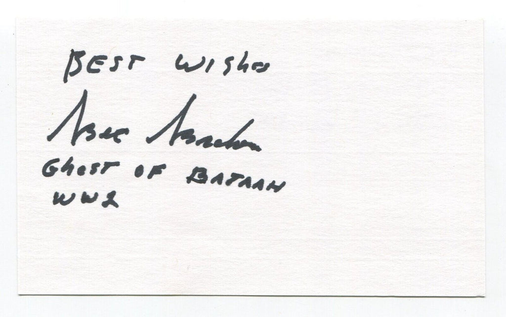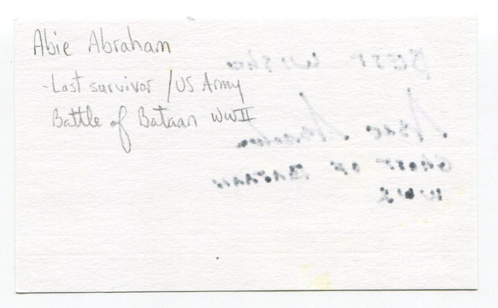 Abie Abraham Signed 3x5 Index Card Autographed Battle of Bataan WWII US Army