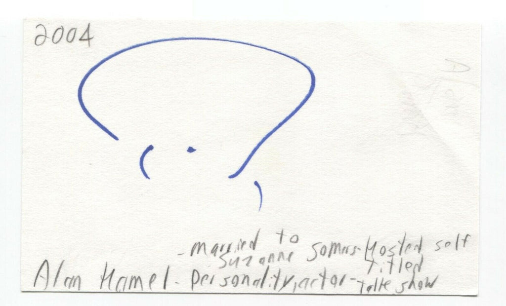 Up for sale is an autographed index card, boldly signed by host Alan Hamel. This autograph was part of an enormous collection of over 9000 in person collected signatures.