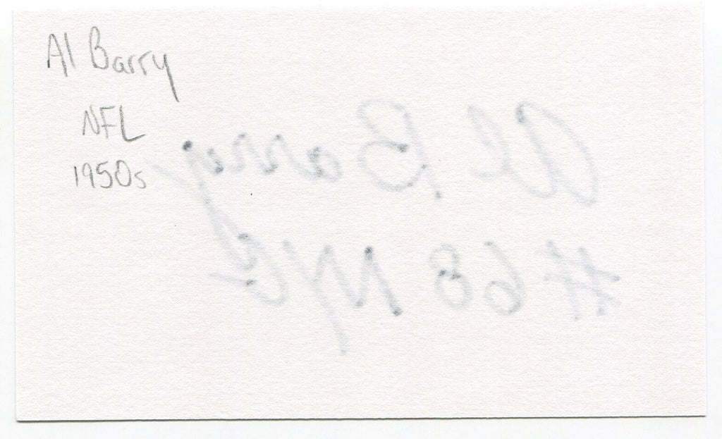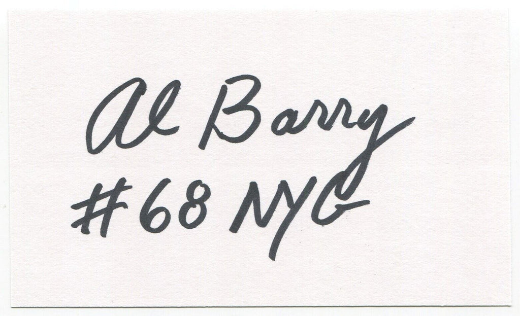 Up for sale is an autographed 3x5 index card, boldly signed by Allan "Al" Barry. Just a great looking autograph that will display nicely. Autograph was part of a huge "MP" Collection, consisting of over 3,000 signed index cards that I was fortunate to purchase in it's entirety.