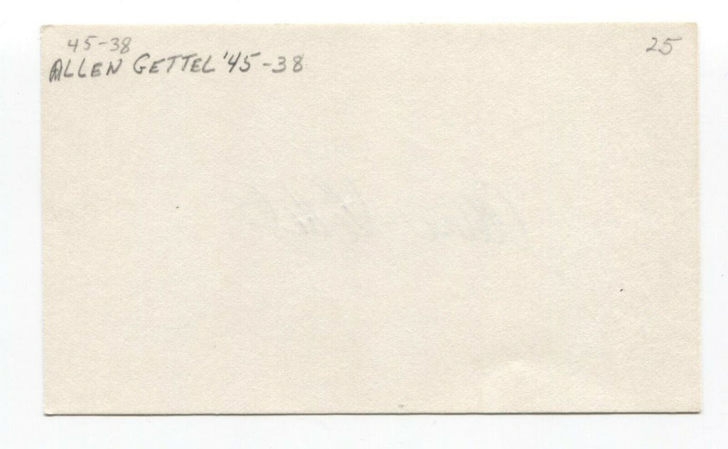 Up for sale is an autographed index card, boldly signed by Allen Gettel.  Just a great looking autograph that will display nicely.  Autograph was part of a large collection of cut autographs and index cards, over 200 baseball signatures that I was fortunate to purchase in it's entirety.