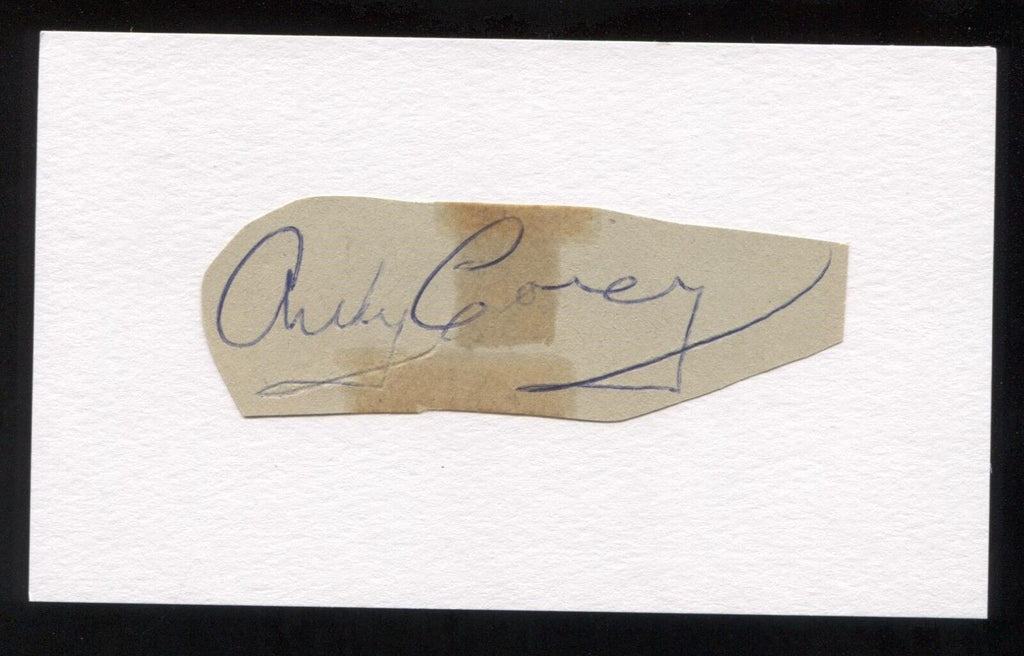Up for sale is an autograph cut, adhered to a 3x5 inch index card, boldly signed by Andy Carey. Autograph was signed circa 1962 and was part of a large collection of cut autographs that I was fortunate to purchase in it's entirety.
