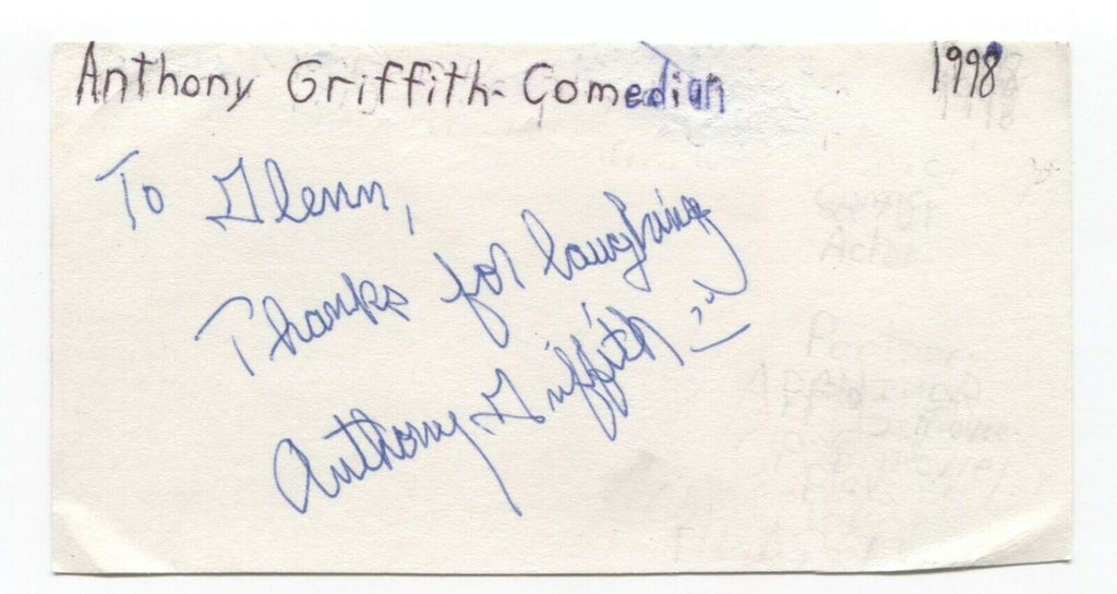 Up for sale is an autographed 3x5 index card, boldly signed by comedian Anthony Griffith.  This autograph was part of an enormous collection of over 9000 in person collected signatures.