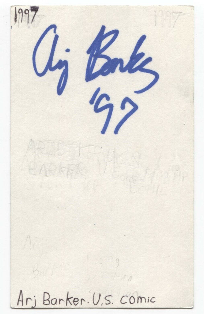 Up for sale is an autographed 3x5 index card, boldly signed by comedian Arj Barker. This autograph was part of an enormous collection of over 9000 in person collected signatures.