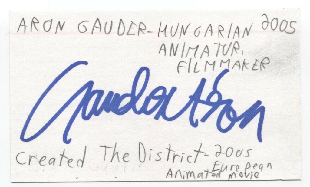 Up for sale is an autographed index card, boldly signed by director Aron Gauder. This autograph was part of an enormous collection of over 9000 in person collected signatures.