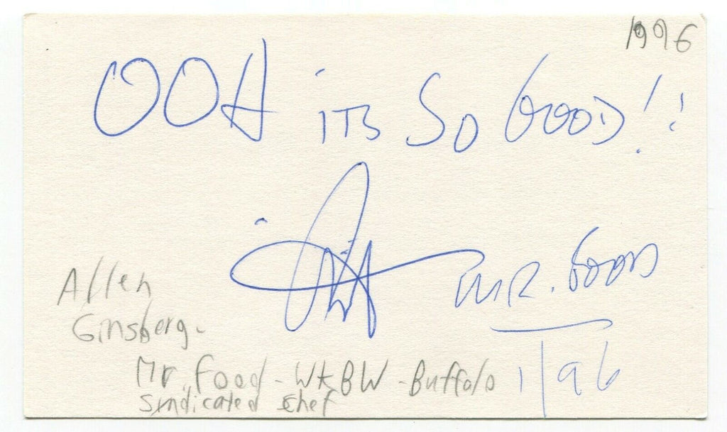 Art Ginsburg Signed 3x5 Index Card Autographed Signature Canadian Mr. Food