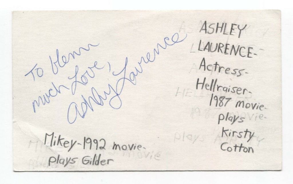 Ashley Laurence Signed 3x5 Index Card Autographed Actress Hellraiser
