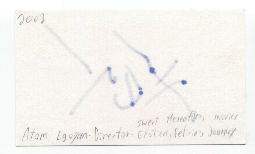 Atom Egoyan Signed 3x5 Index Card Autographed Signature Film Director