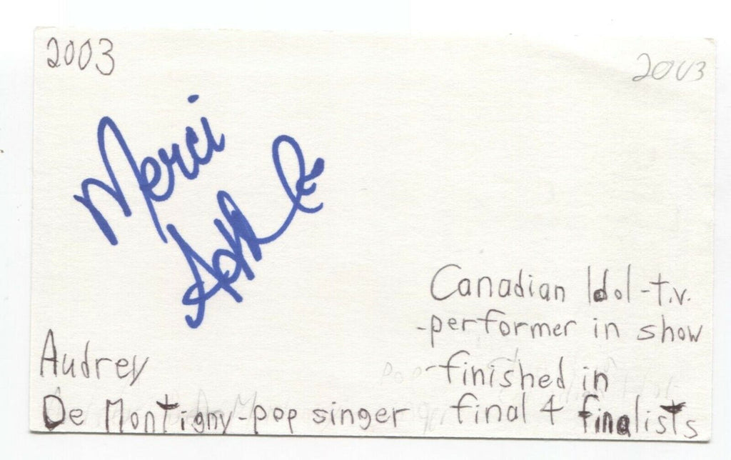 Audrey De Montigny Signed 3x5 Index Card Autographed Signature Singer Musician