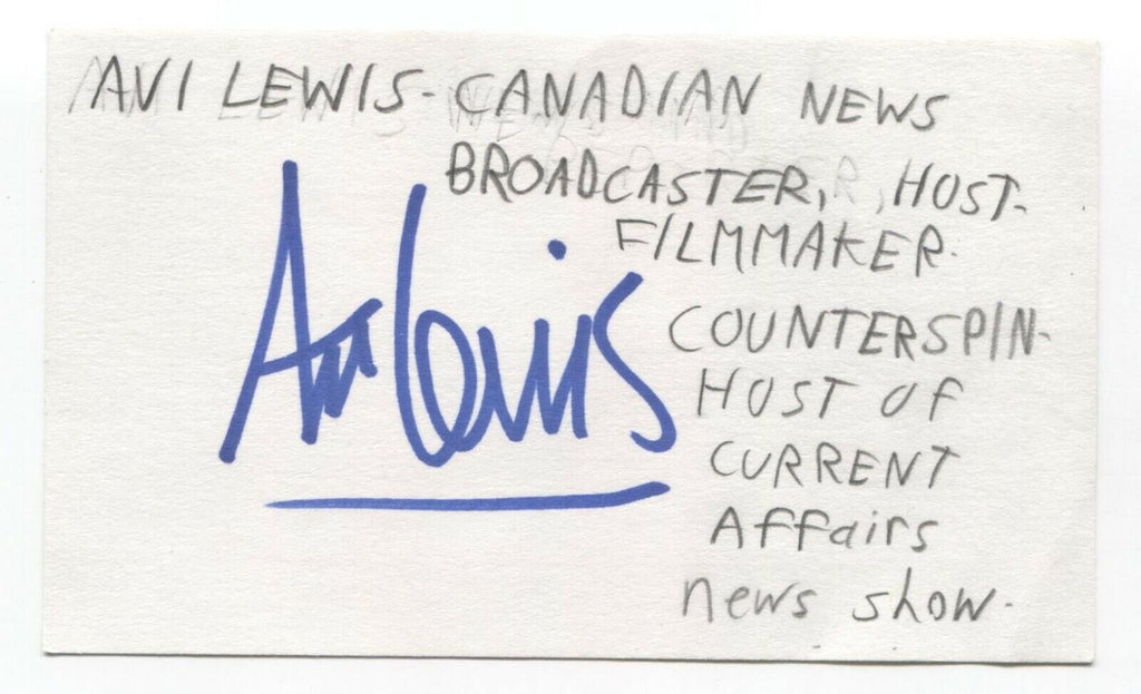Avi Lewis Signed 3x5 Index Card Autographed Signature Filmmaker Host