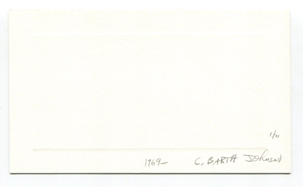 Up for sale is an autographed card approximately 3.5 x 5.5 inch card, boldly signed by baseball player Bart Johnson. Just a great looking autograph that will display nicely. Autograph was acquired by renowned autograph collector Roger Harris.