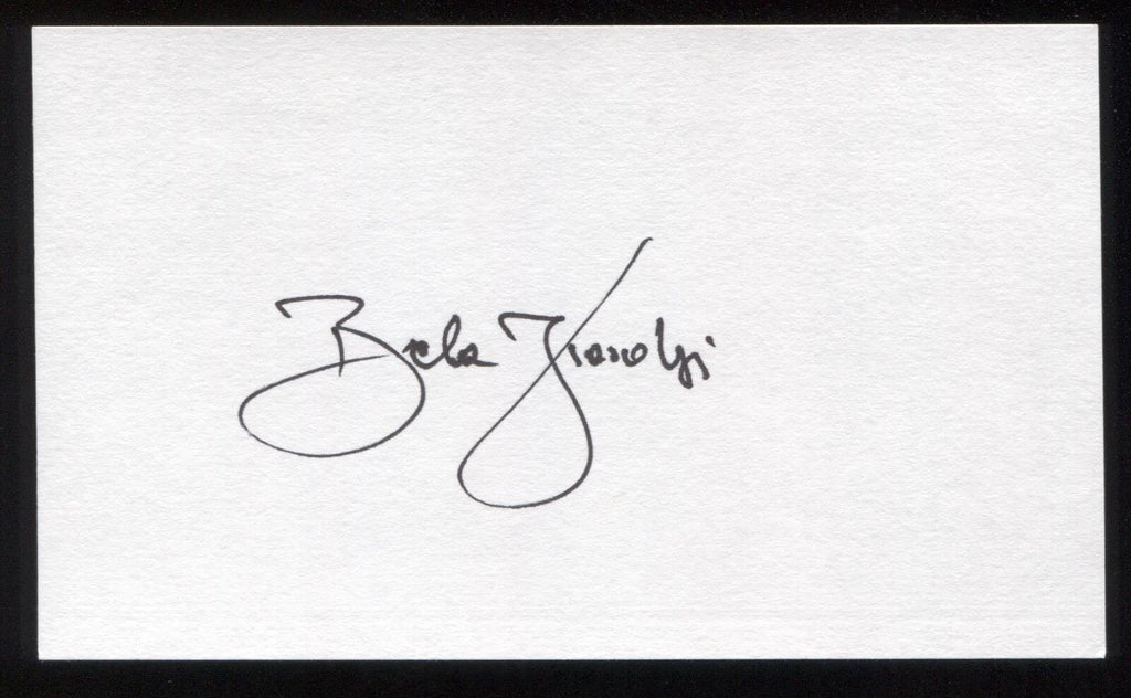 Up for sale is a signed 3x5 index card boldly autographed by Bela Karolyi. Beautifully signed in ink pen, this will be a great example to matte and frame with a vintage photo. Signature was obtained by an autograph seeker whose collection I purchased in it's entirety.