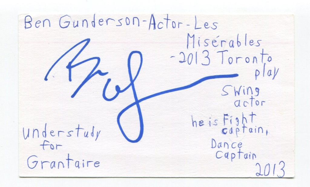 Ben Gunderson Signed 3x5 Index Card Autographed Actress Americas Got Talent