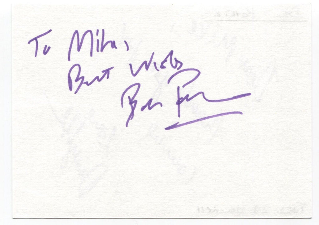 This thick white paper page features a bold and clear purple pen autograph of Ben Porter. Reverse of the card features an autograph that I have not been able to identify. Originating from the "Michael Berry" autograph collection, the page itself measures approximately 5.5 x 4 inches in size.