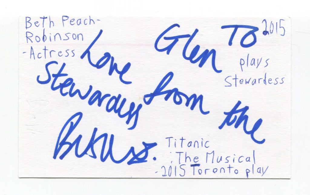 Beth Peach Robinson Signed 3x5 Index Card Autographed Actor Titanic The Musical