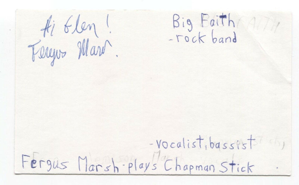 Big Faith Fergus Marsh Signed 3x5 Index Card Autographed Signature Band