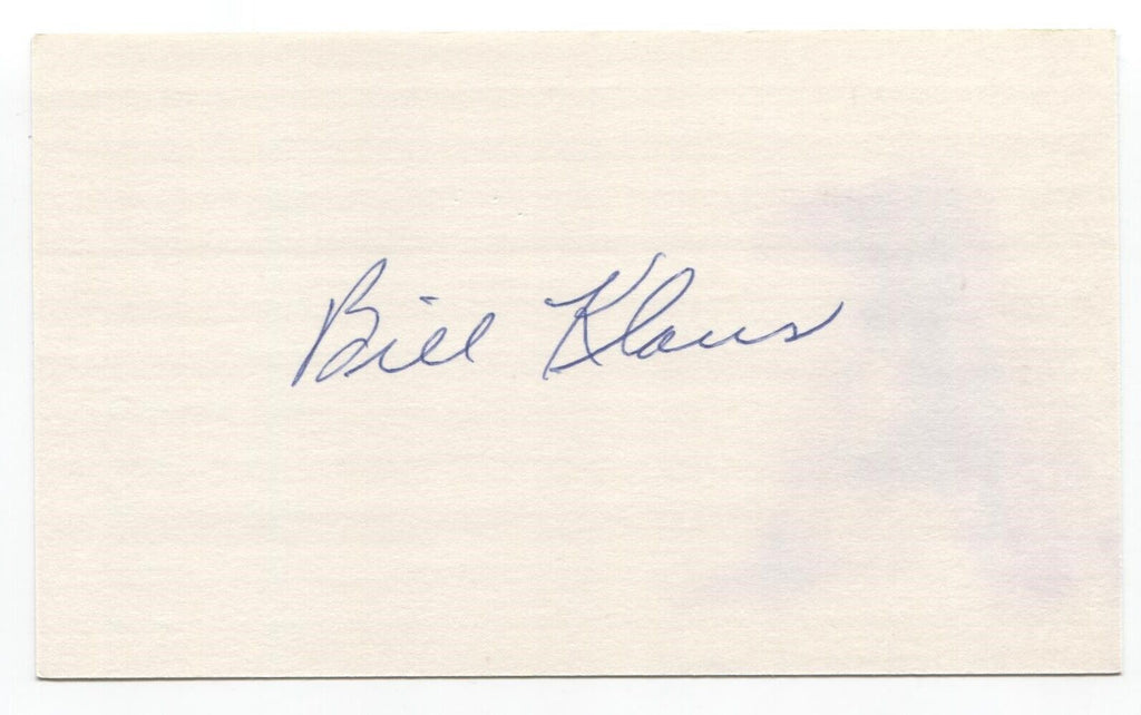 Up for sale is an autographed 3x5 index card, boldly signed byWilliam (Bill) Joseph Klaus. Just a great looking autograph that will display nicely. Autograph was part of a large collection of over 110 signatures that I was fortunate to purchase in it's entirety.
