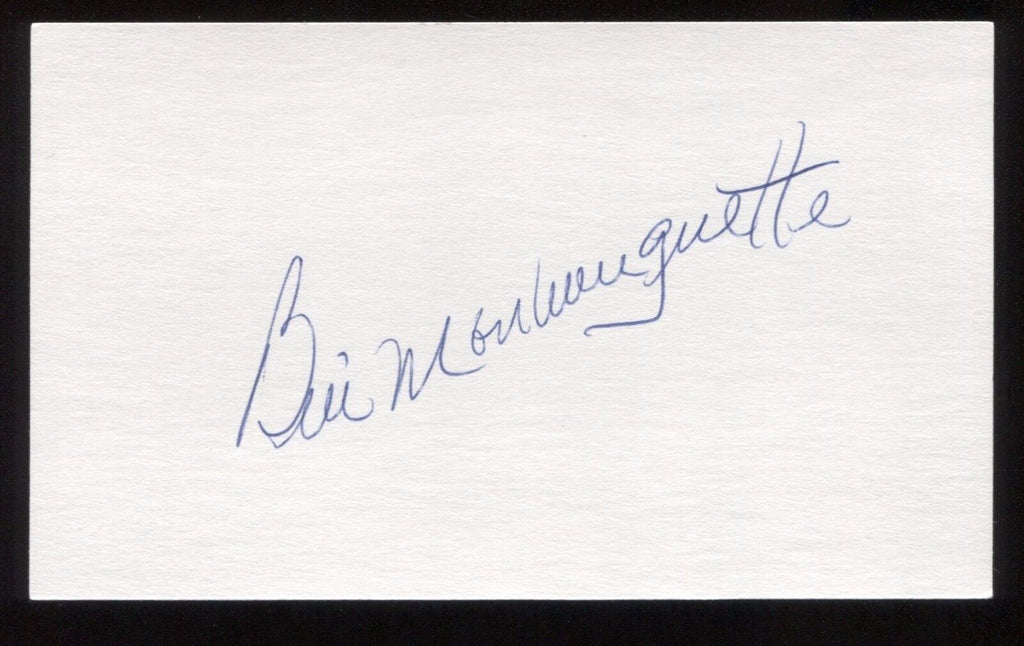 Up for sale is a signed 3x5 index card boldly autographed by Bill Monbouguette. Beautifully signed in ink pen, this will be a great example to matte and frame with a vintage photo. Signature was obtained by an autograph seeker whose collection I purchased in it's entirety.