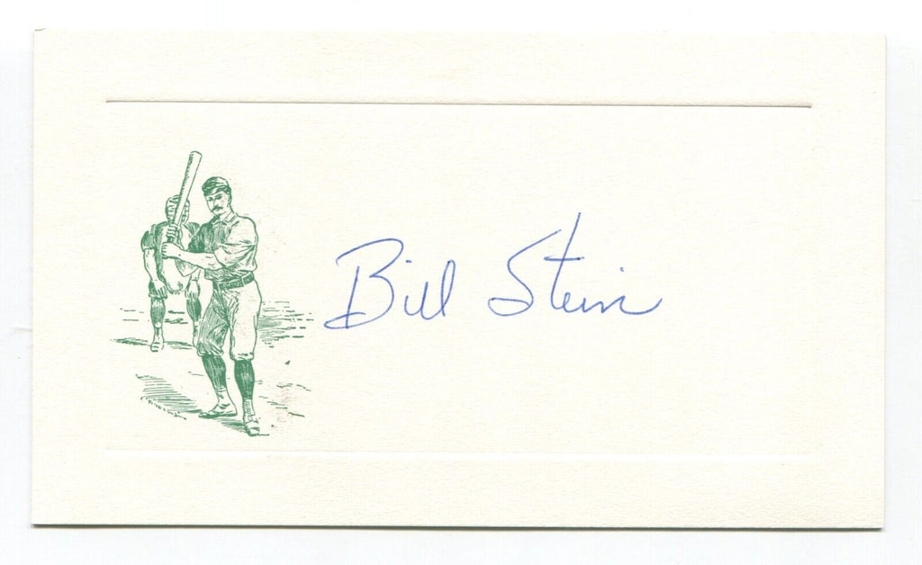 Up for sale is an autographed approximately 3.5 x 5.5 inch card, boldly signed by baseball player Bill Stein. Just a great looking autograph that will display nicely. Autograph was acquired by renowned autograph collector Roger Harris.