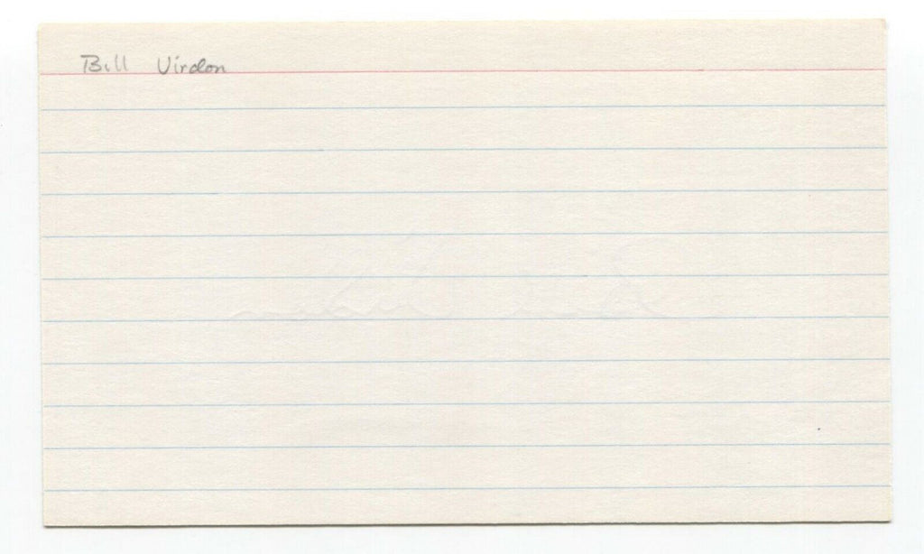 Up for sale is an autographed 3x5 index card, boldly signed by Bill Virdon. Just a great looking autograph that will display nicely. Autograph was part of a large collection of over 325 baseball signatures that I was fortunate to purchase in it's entirety.