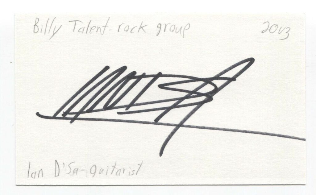 Billy Talent - Ian D'Sa Signed 3x5 Index Card Autographed Signature Guitarist