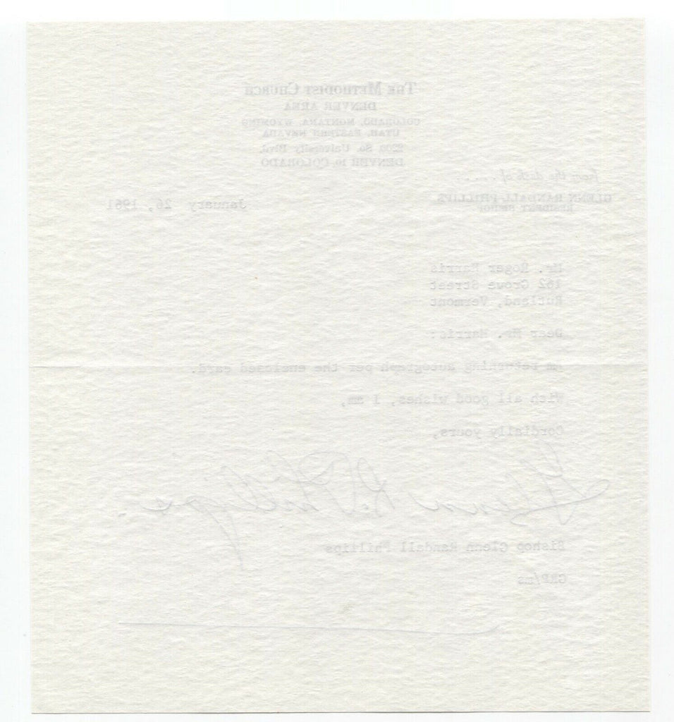 Bishop Glenn Randall Phillips Signed Letter Autographed Signature