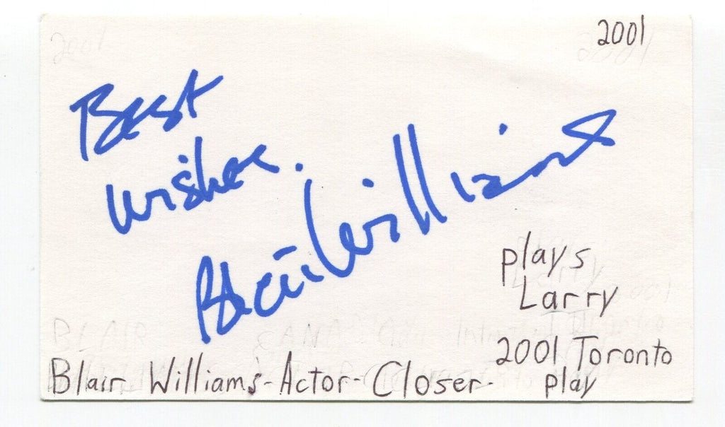 Up for sale is an autographed 3x5 index card, boldly signed by actor Blair Williams. This autograph was part of an enormous collection of over 9000 in person collected signatures, all acquired in person by the great Glenn Marshall.