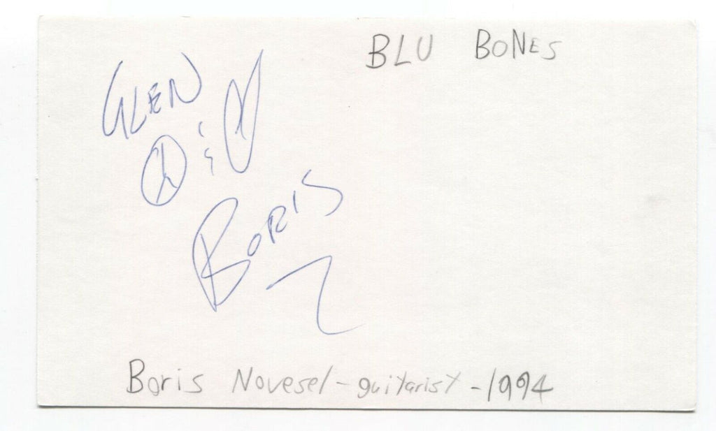 Up for sale is an autographed 3x5 index card, boldly signed by Boris Novosel, of the band Blu Bones.  Autograph was part of an enormous collection of over 9000 in person collected signatures.