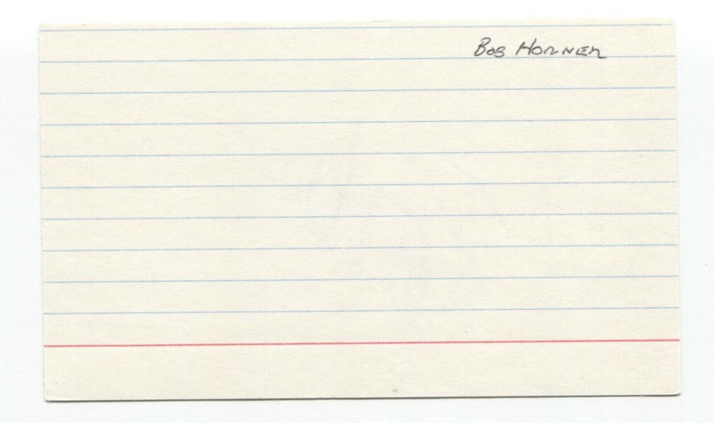 Up for sale is an autographed index card, boldly signed by Bob Horner.  Autograph was part of a large collection of cut autographs and index cards, over 200 baseball signatures that I was fortunate to purchase in it's entirety.