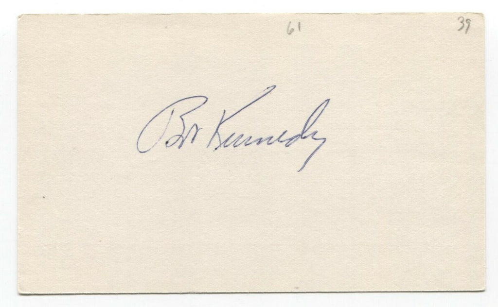 Up for sale is an autographed index card, boldly signed by Bob Kennedy. Autograph was part of a large collection of cut autographs and index cards, over 200 baseball signatures that I was fortunate to purchase in it's entirety.
