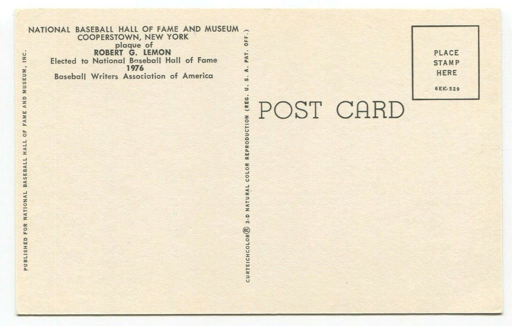 Bob Lemon Signed Gold HOF Plaque Baseball Hall of Fame Autographed Postcard