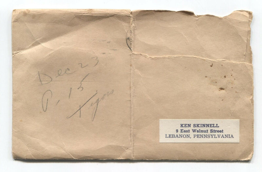 Up for sale is a signed thick paper stock baseball measuring approximately 2.5 inches in diameter, featuring an autograph of Bob Miller. The third scan (not included with the item) shows the original mailing envelope the signature was received in, postmarked from 1953. This autograph was part of a large collection of over 700 vintage baseball autographs and memorabilia, all obtained between 1952 and 1954 by the same original owner.