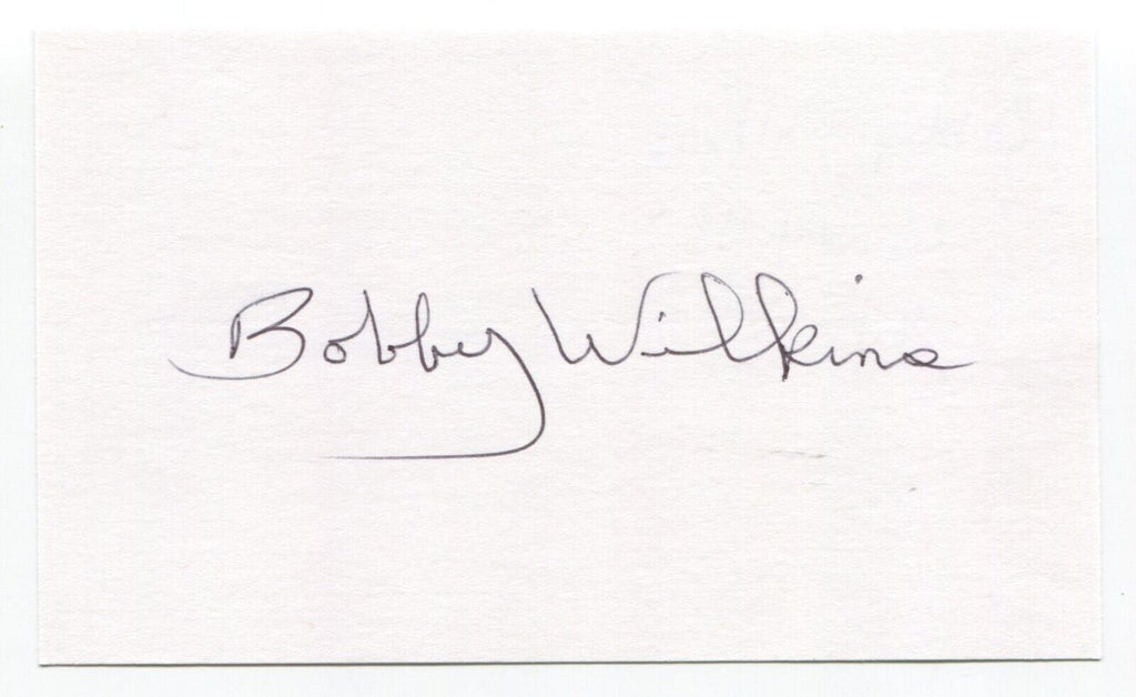 Up for sale is an autographed 3x5 index card, boldly signed by baseball player Bobby Wilkins. Just a great looking autograph that will display nicely.   Autograph was part of a huge "MP" Collection, consisting of over 3,000 signed index cards that I was fortunate to purchase in it's entirety.