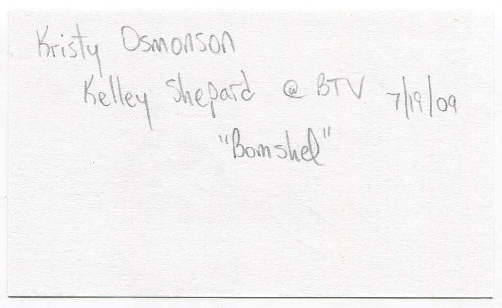 Up for sale is an autographed 3x5 index card, boldly signed by members of the band Bomshel, Kristy Osmunson and Kelley Shepard. Just a great looking autograph that will display nicely. Autograph was part of a huge "MP" Collection, consisting of over 3,000 signed index cards that I was fortunate to purchase in it's entirety.