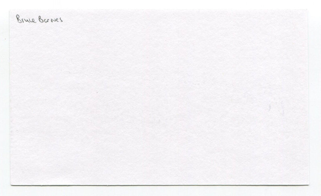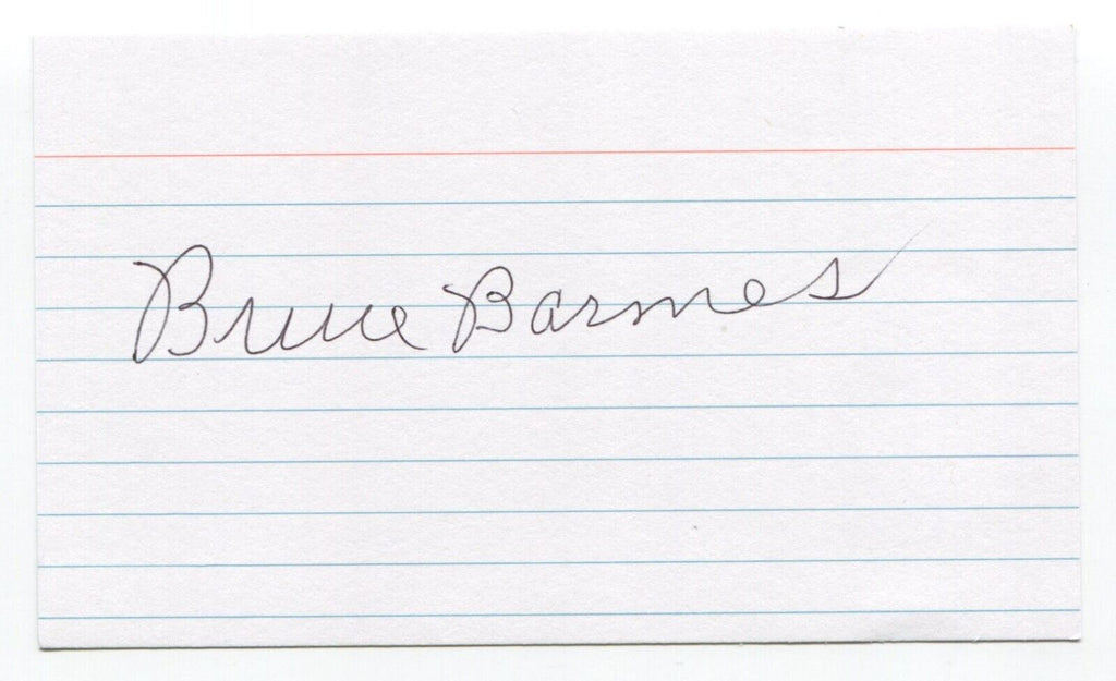 Up for sale is an autographed cut adhered to a 3x5 index card, signed by baseball player Bruce Barmes. Just a great looking autograph that will display nicely. Autograph was part of the JP collection consisting of over 350 autographed index cards.