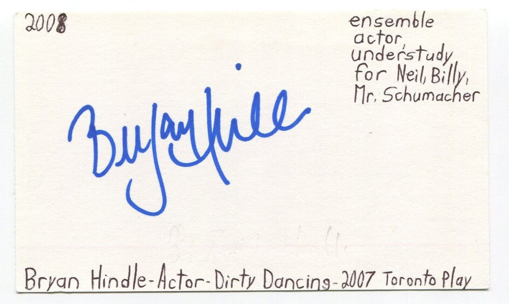 Bryan Hindle Signed 3x5 Index Card Autographed Actor Dirty Dancing Hairspray