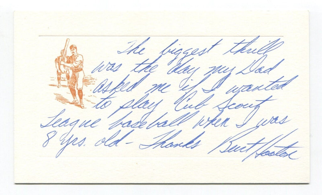 Up for sale is an autographed approximately 3.5 x 5.5 inch card, boldly signed by baseball player Burt Hooton. Just a great looking autograph that will display nicely. Autograph was acquired by renowned autograph collector Roger Harris.