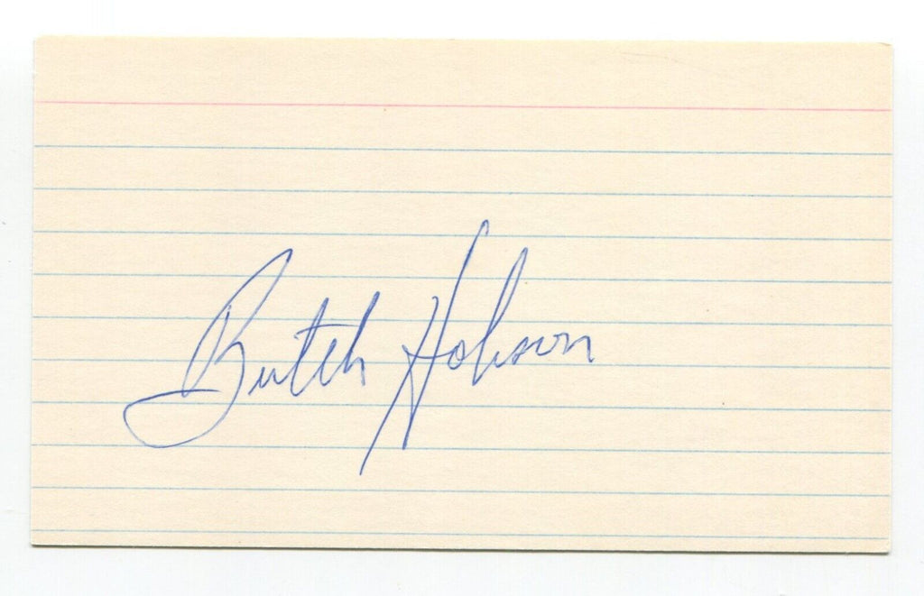 Up for sale is an autographed cut adhered to a 3x5 index card, signed by baseball player Butch Hobson. Just a great looking autograph that will display nicely.   Autograph was part of the JP collection consisting of over 350 autographed index cards.